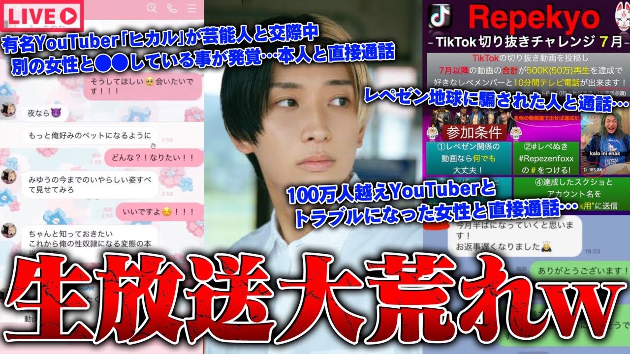 【緊急生放送】まじか…450万人越えYouTuber「ヒカル」が芸能人と付き合っている裏で別の女性YouTuberと●●している事が発覚…本人と通話…レペゼン地球に騙された人と通話…