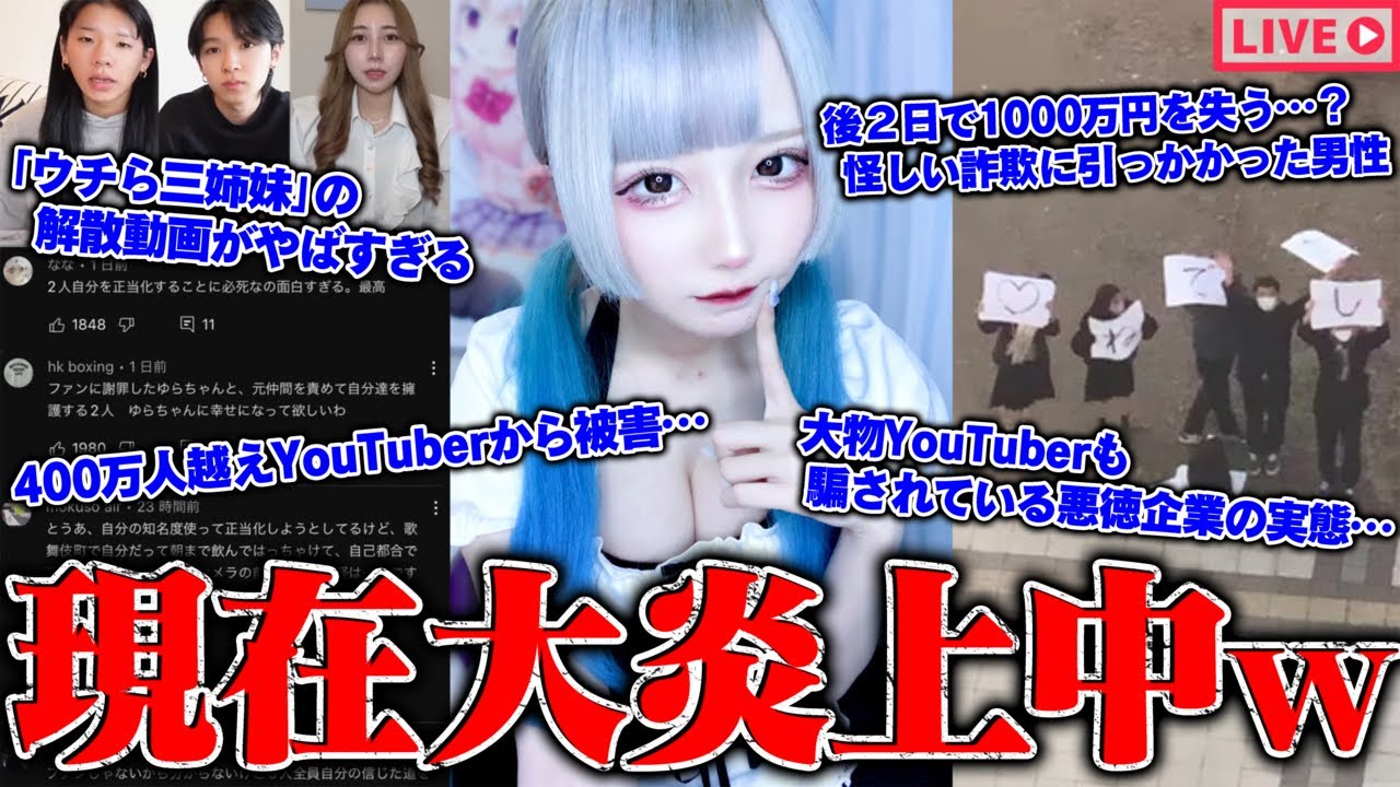 【緊急生放送】400万人越えYouTuberから被害を受けた従業員から告発…2日後に1000万円失う?助かる方法は視聴者の協力…病院前に居る謎の高校生達が手に持っている紙の内容が怖すぎる…ウチら三姉妹